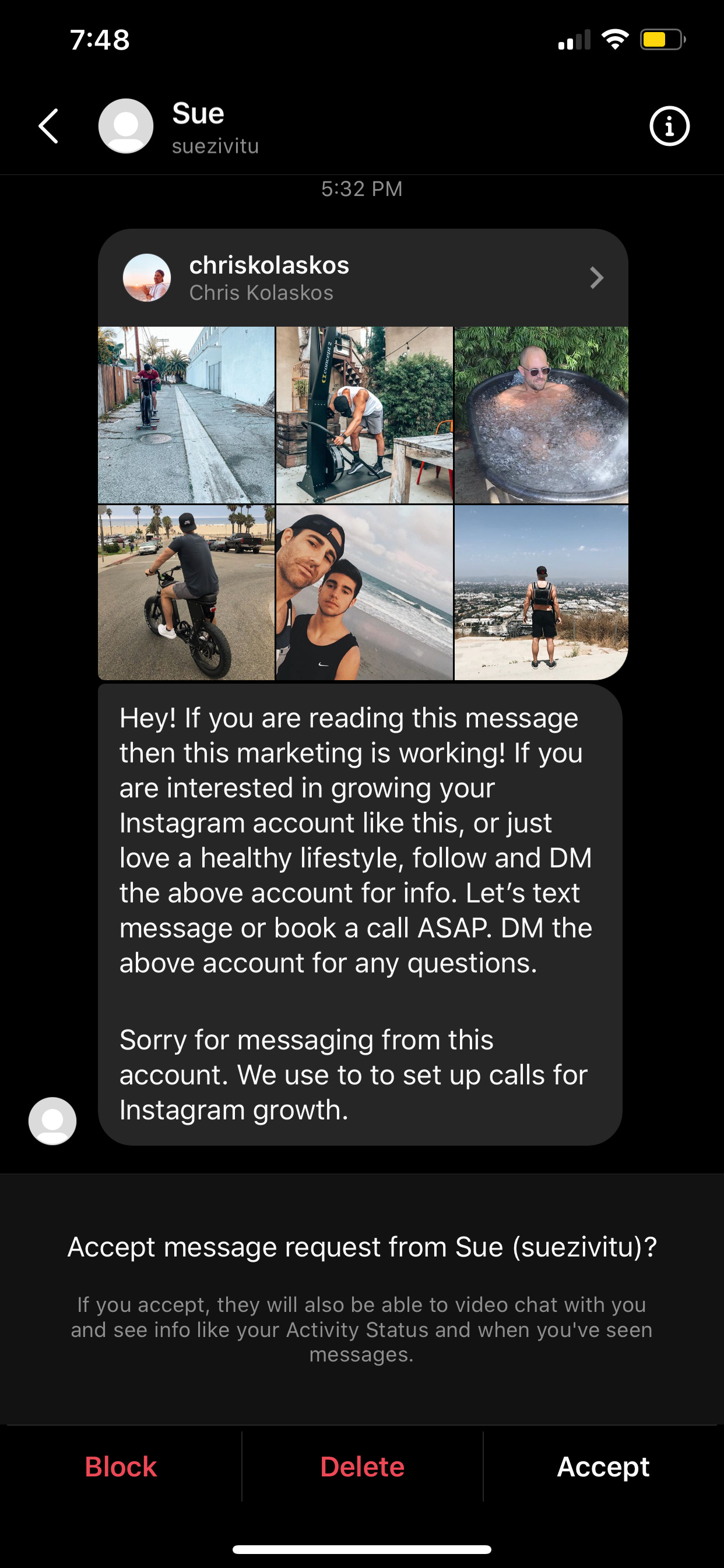 In fact, I'm willing to bet that you've been hit with one of these before. You open the Instagram app, check your inbox, and you see that you have a message request. Naturally, you open it because you're curious.